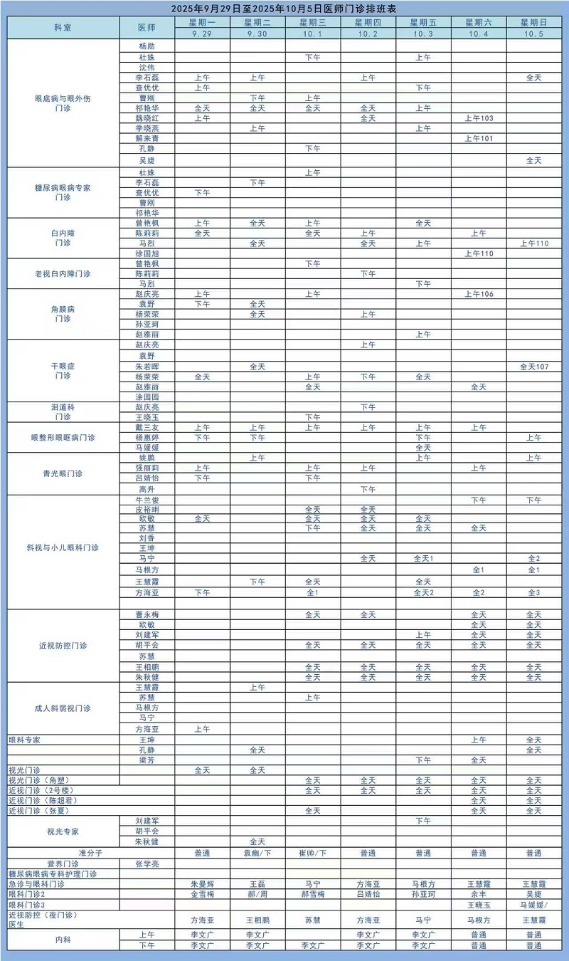 · 小儿眼科专家皮裕琍教授10月门诊通知