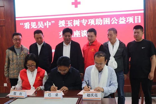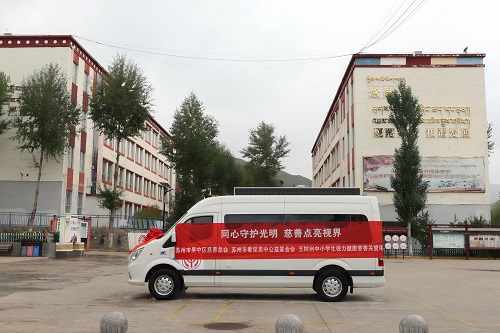 9月22日,“同心守护光明·慈善点亮视界”——苏州市吴中区慈善总会、苏州市看见吴中公益基金会玉树州中小学视力健康慈善项目捐赠仪式在青海玉树州民族中学举行,向玉树州人民医院捐赠价值80万元的光学验光车,向玉树州中学捐赠首批200副定制爱心眼镜。