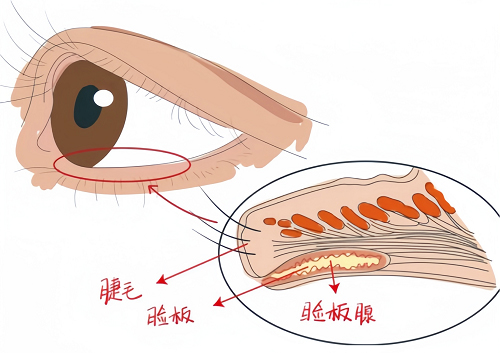 我们的眼睑边缘,藏着一排像“小油管”一样的腺体,叫“睑板腺”。它的作用特别关键,每次眨眼时,会分泌一层“脂质”,盖在泪液表面,阻止泪液过快蒸发。