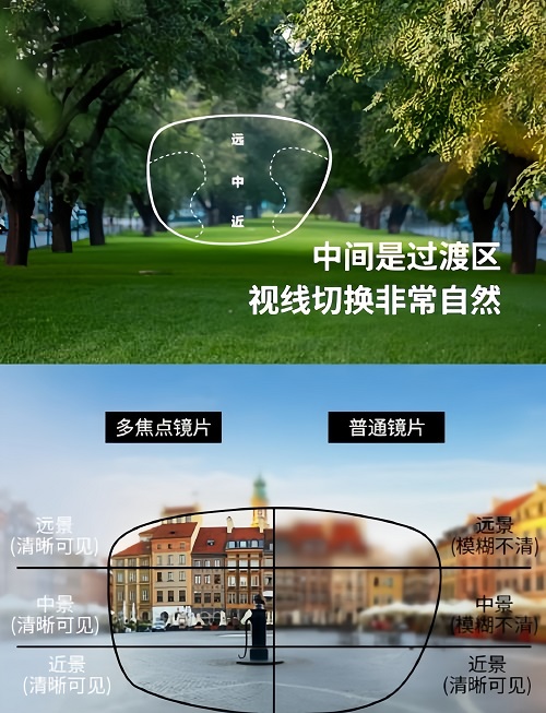 3. 双光镜:上下分区矫正不同距离,适合需要频繁切换视距的人群。