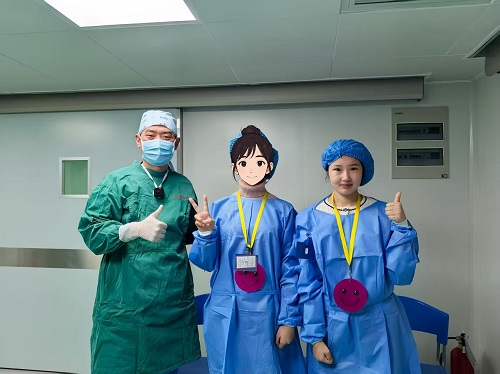 第一位接受手术的患者,是24岁的临床护士曹小姐。长期坚守临床一线的她,因工作需要对视觉质量有着极高要求。术前检查显示,其左眼近视150度,右眼近视400度,存在明显屈光参差。经过全面评估与个性化方案设计,崔主任为其量身定制了全飞秒SMILE pro矫正方案。经过术前准备、术中操作、术后观察,整个手术过程用时30分钟,全程流畅高效。