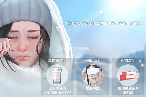 雪盲症的症状不会立刻出现,通常有4-12小时的潜伏期,可能在玩雪后当晚或第二天才发作,表现为眼睛红肿、不停流泪,有强烈的刺痛、针刺或沙磨感,就像眼里进了沙子一样难受;且畏光、视力模糊。