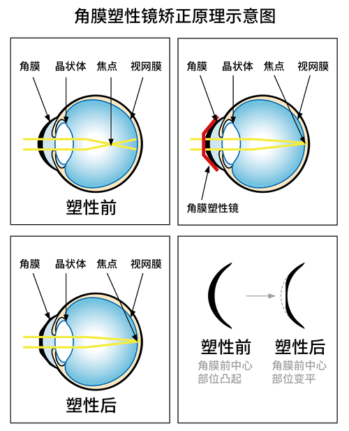 角膜塑形镜(OK镜)是一种夜间佩戴的硬性透气性角膜接触镜,通过夜间睡眠时轻柔改变角膜表面形态,达到白天无需佩戴眼镜即可拥有清晰裸眼视力的效果。更重要的是,它能有效延缓儿童青少年眼轴增长,降低近视度数加深速度,是目前临床公认的近视防控有效手段之一。