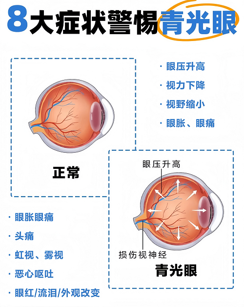 而视神经受损是不可逆转的,一旦拖延救治,视力就会永久丧失,甚至导致失明。进而引发视力骤降、眼痛头痛、恶心呕吐、看灯光有彩虹圈等典型症状,也就是临床所说的 “青光眼急性发作”。