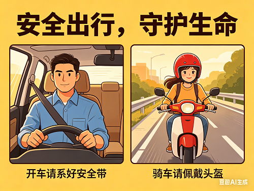 驾驶或乘坐车辆时,务必系好安全带,摩托车、电动自行车驾乘人员应正确佩戴安全头盔,能有效减少头部及眼部受伤风险。并遵守交通规则,避免疲劳驾驶、违规变道等危险行为,降低车祸发生概率。